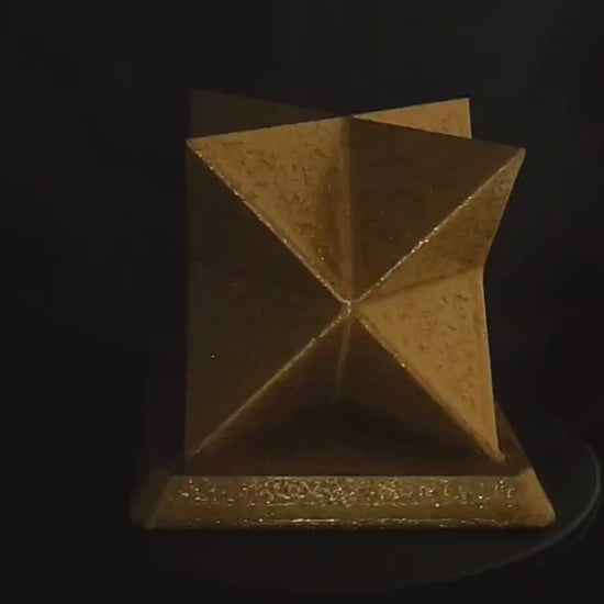 The Merkaba, a sacred geometric symbol, is believed to be a powerful tool for spiritual awakening and ascension. This 3D printed masterpiece, crafted in gold silk PLA and coated with clear gold glitter resin, captures the intricate beauty and energetic properties of this ancient symbol.