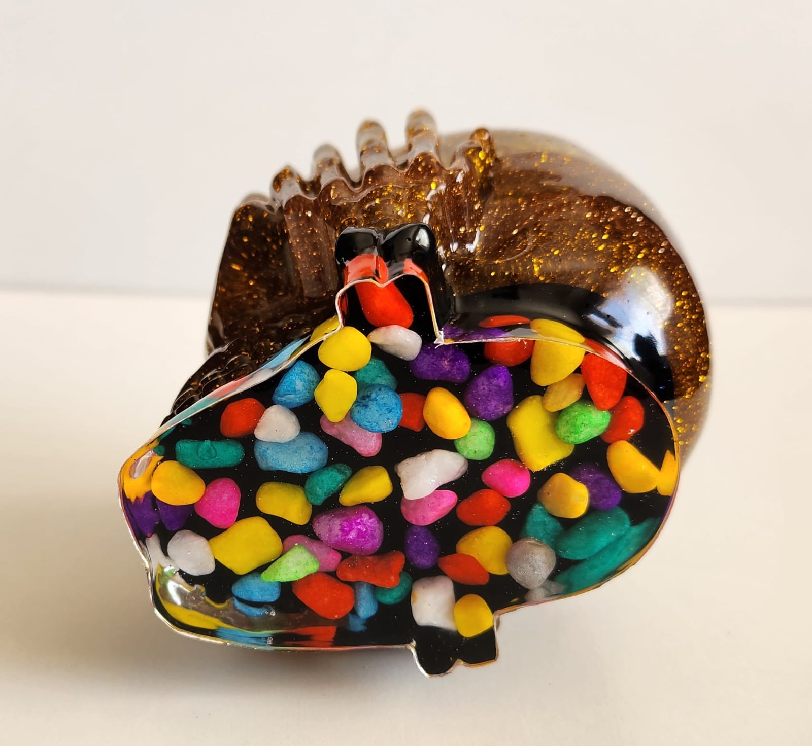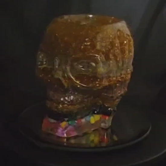 Embrace the unconventional with our mesmerizing Psychedelic Skull Candle Holder. This isn't your ordinary home decor; it's a portal to a world of vibrant colors and intriguing patterns. Crafted with meticulous attention to detail, the resin skull is adorned with a kaleidoscope of hues, creating a hypnotic and captivating piece.